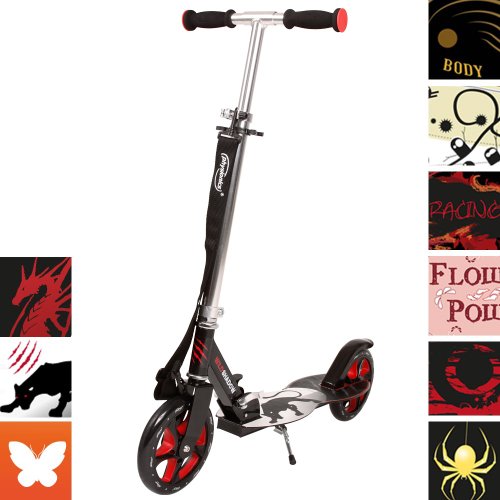 Physionics® - Trottinette - SCOOT - Crazytown (beige-noir) - pliable - en alu - roues 205mm - béquille - max 100 KG - DIVERSES COULEURS AU CHOIX