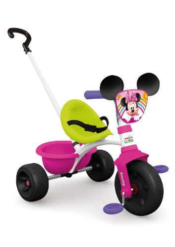 Tricycle Be move Minnie pour fille SMOBY Ref 444117. A partir de 15 mois. Ce vélo pour enfant possède un cadre acier pour une grande stabilité. Harnais de sécurité. Canne parentale.
